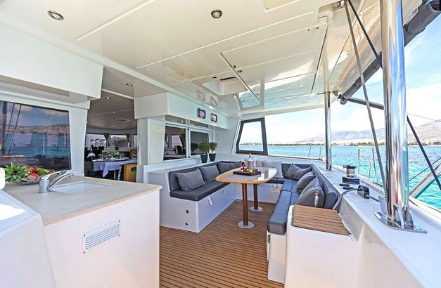 This luxurious catamaran offers a slo a powerful Fusion sound system (Bluetooth controlled) in all areas :Fly-bridge, salon, cockpit and forward lounge.