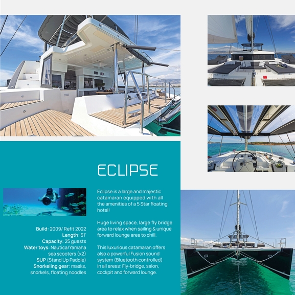 A large and majestic catamaran equipped with all the amenities of a 5 star floating hotel!